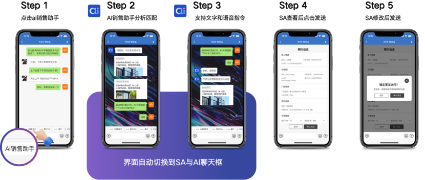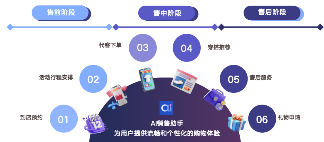 联蔚数科的企微插件式「门店导购AI助手」,支持导购在售前、售中、售后三个阶段快速响应和识别客户需求,并自动生成和填写表单,极大地提高了工作效率和准确性,大幅降低了员工在各系统工具间切换的时间成本: