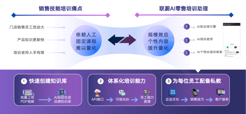 答案是基于「AI的知识库」解决方案和「AI智能培训工具」: