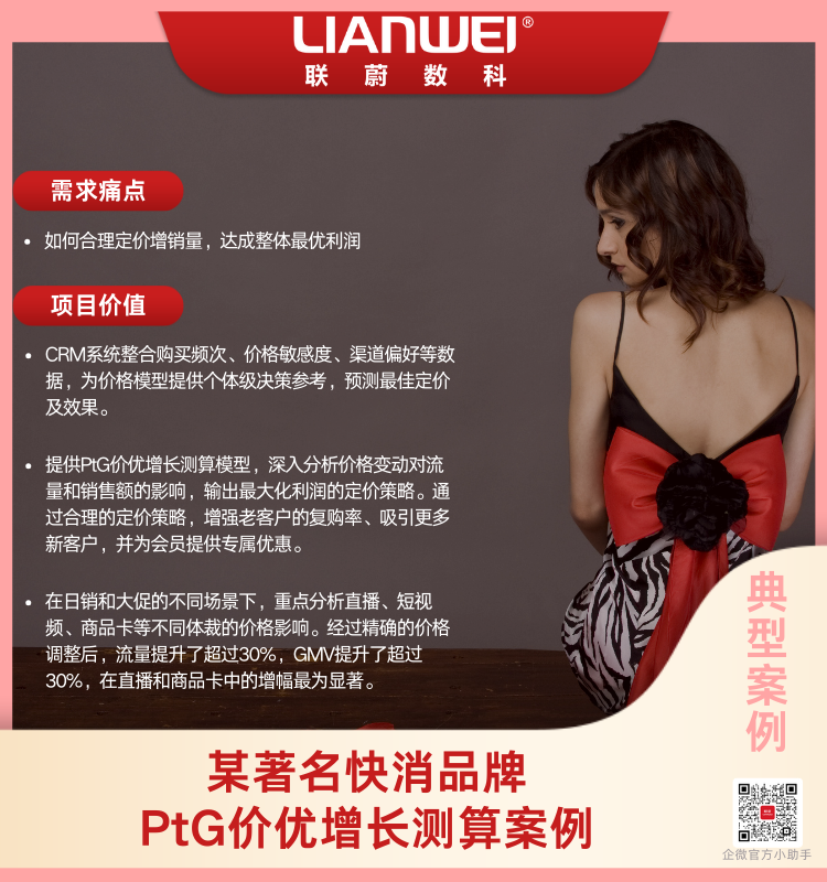 ✅ 构建价格弹性模型,结合客户消费特征(购买力/价格敏感度/渠道偏好/使用场景),推出定价策略工具——Price to GMV价量模型,将定价策略与客户洞察深度耦合,保障客户体验,同时科学平衡利润与市场份额。